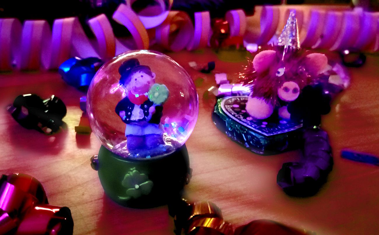 Eigentlich ist diese Website nicht dafür gedacht, Schnappschüsse zu veröffentlichen aber in diesem Fall mache ich mal eine Ausnahme, weil ich mich über die Schneekugel, die mir meine Mutter und das Glücksschweinchen, das mir meine Tante geschenkt hat, wirklich sehr gefreut habe.